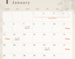 OPEN. 9:00~19:00 / CLOSED. 日・祝日
