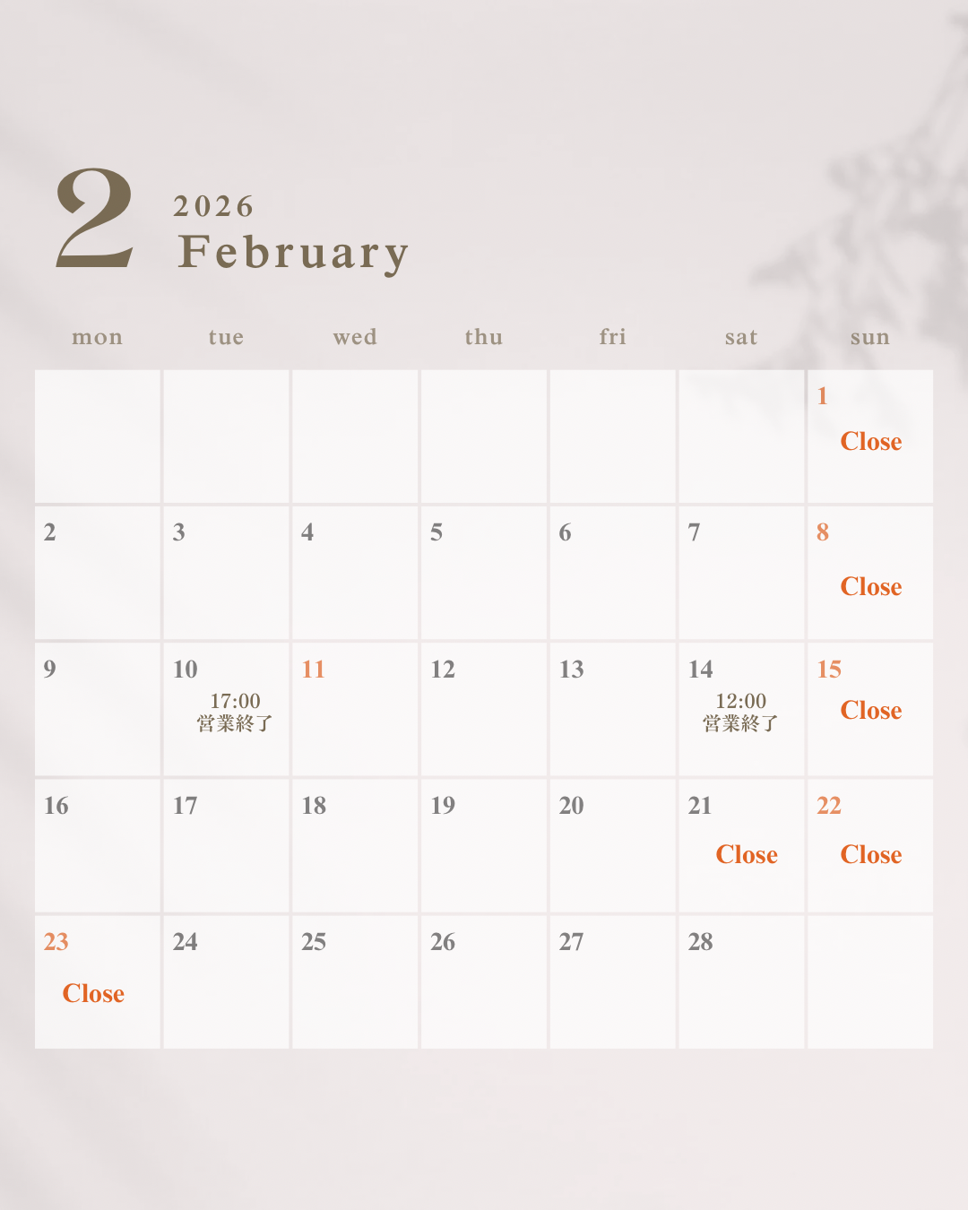 2月の営業日✅
